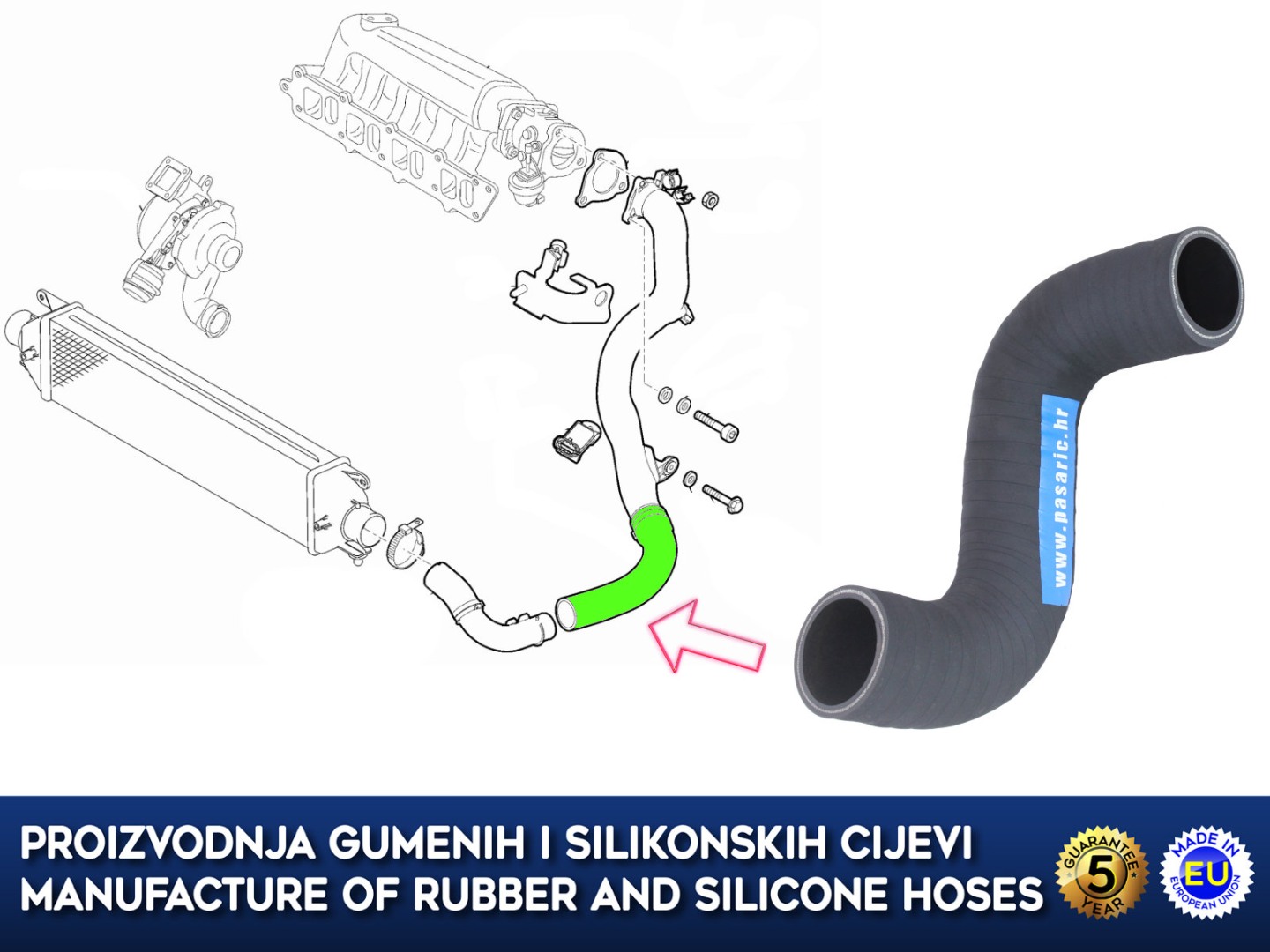 Replacement hose from intercooler to turbine FIAT BRAVO / LANCIA DELTA, 1.6 JTD, 51842990, 51825168