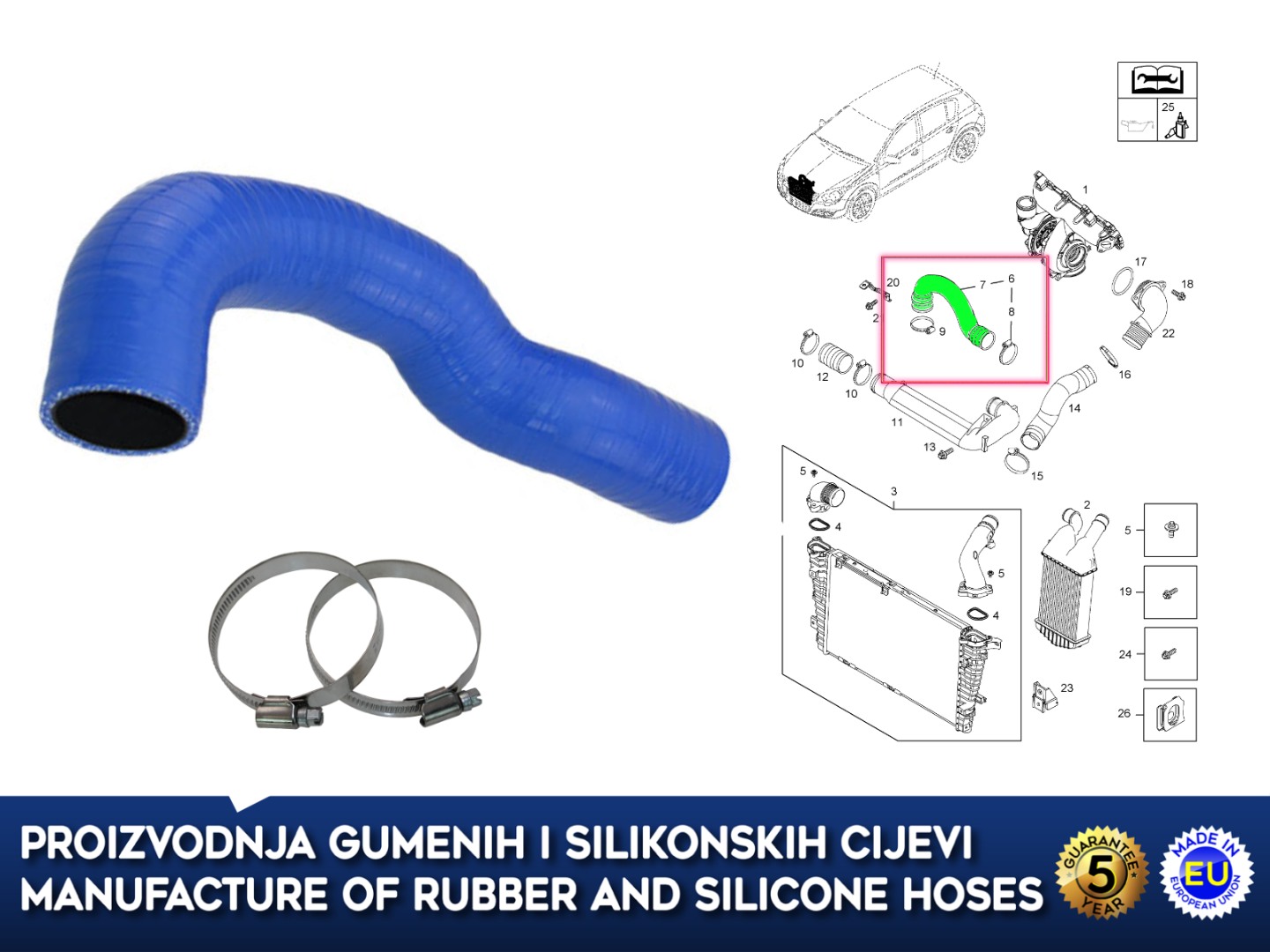 Silicone intercooler turbo hose for OPEL ASTRA H / ZAFIRA B 1.9 CDTI