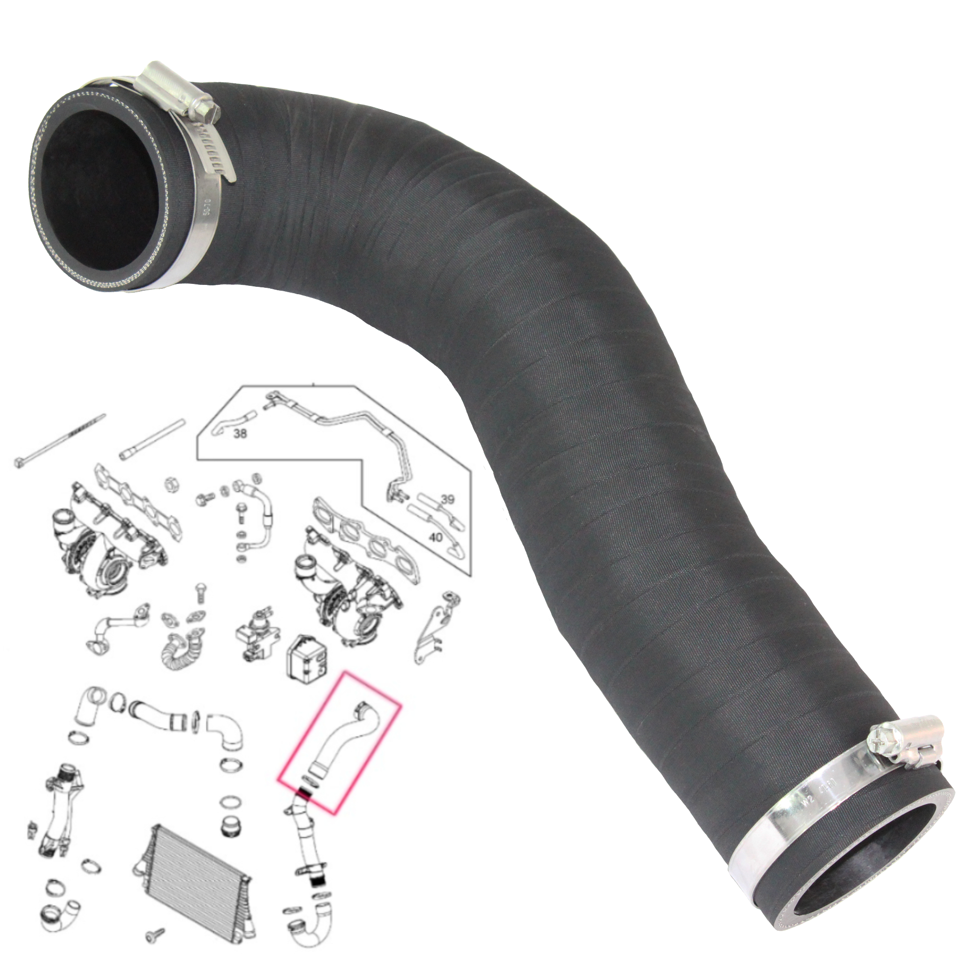 Replacement intercooler hose for SAAB 9-3 1.9 TID, 55350923, 55350915, 55350922, 5835854, 5860506, 315805007